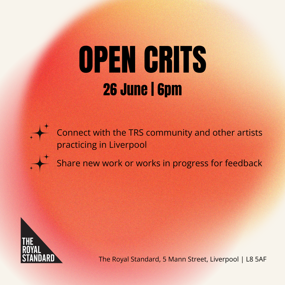 As an artist-led organisation, we have the opportunity to create tools for artistic development, by artists for artists. Therefore, the Open Crits at TRS and their structure are what we make of them. We invite each artist to assign their own rules to how they want their work to be engaged with. Whether that's asking your peers for their brutal honesty or prefacing your work with a guideline for your peers to follow when offering feedback, all artists and their work will be dealt with constructively and respectfully.